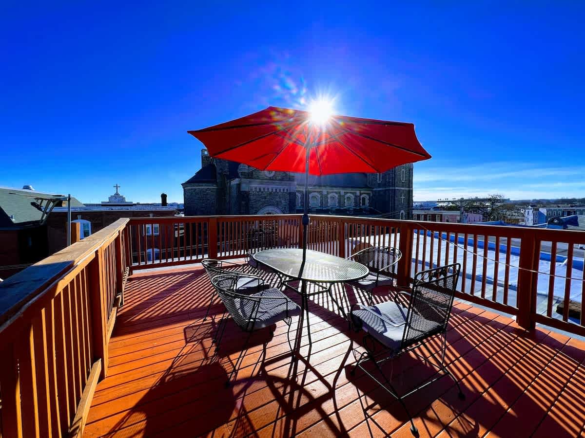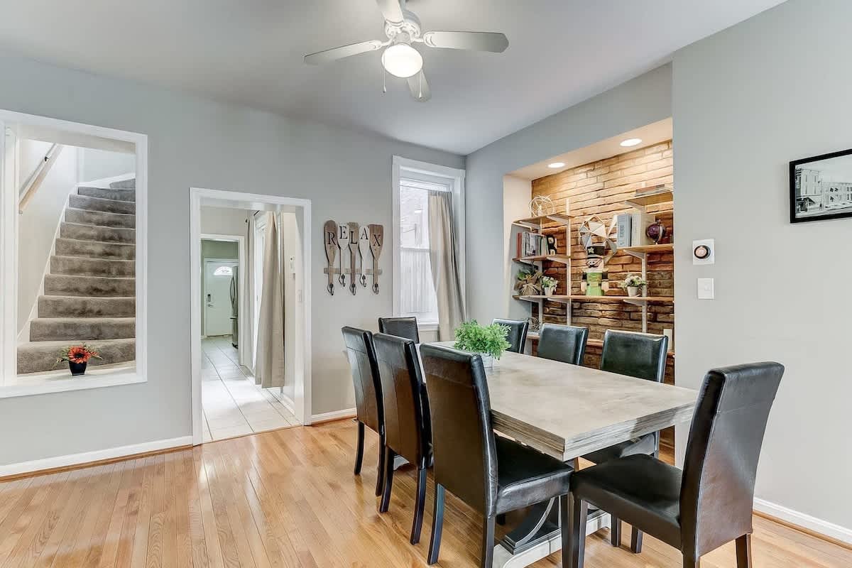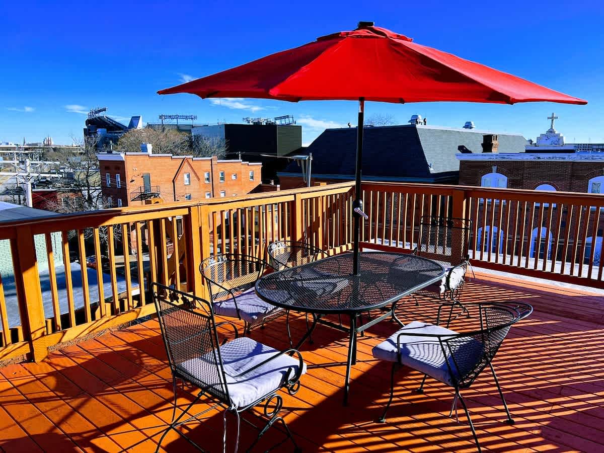 This lovely home boasts a massive private rooftop deck with breathtaking 360-degree skyline views of downtown Baltimore and nearby stadiums. Near the Inner Harbor, Oriole Park at Camden Yards, Baltimore Ravens M&T Bank Stadium, Aquarium, Convention Center, Federal Hill, CFG Bank Arena, Casino, Shopping, Restaurants, and Bars. You'll love the updated kitchen with granite countertops, and stainless steel appliances. Our 3-SUV private parking pad makes our home ideal for large families and groups.