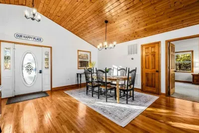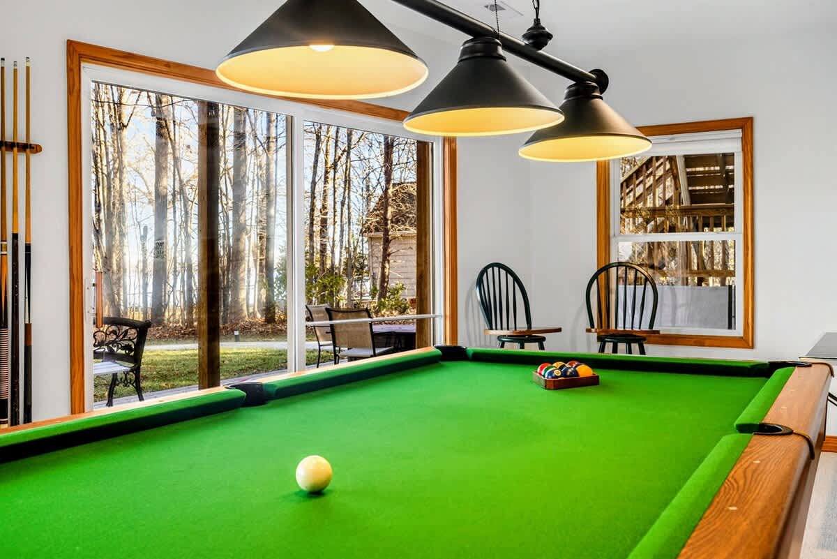 Welcome to Peaceful Haven! This luxurious lakefront retreat on Lake Anna features 5 bedrooms, stunning views, and deep water in a no-wake cove. Relax by the fire pit, enjoy the private dock and sandy beach, or play on the spacious 1-acre lot. Inside, vaulted ceilings, and an open kitchen create a warm, inviting space—plus a fully equipped game room for endless indoor fun. Perfect for family time, quiet escapes, and unforgettable lake adventures!