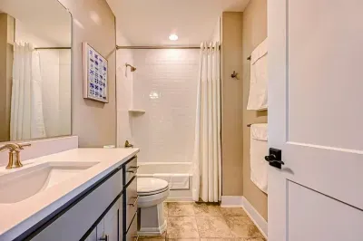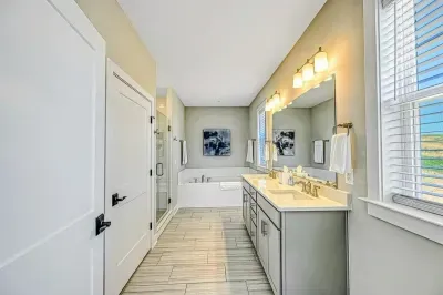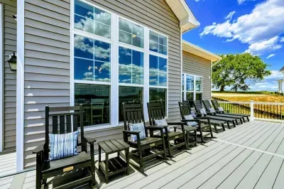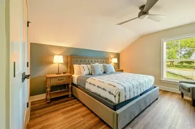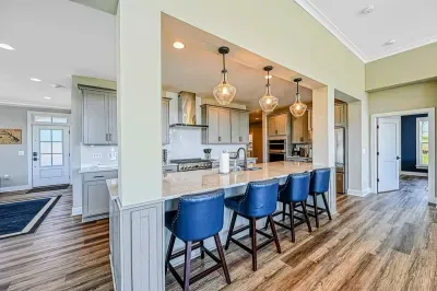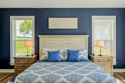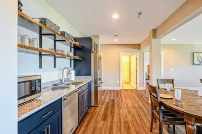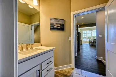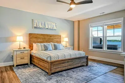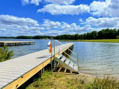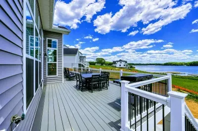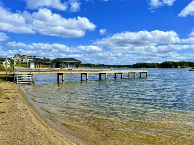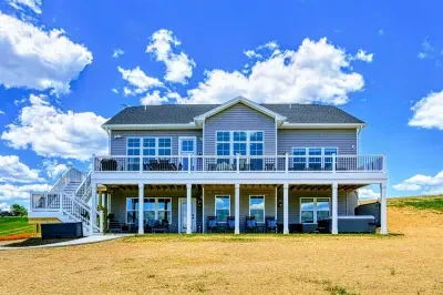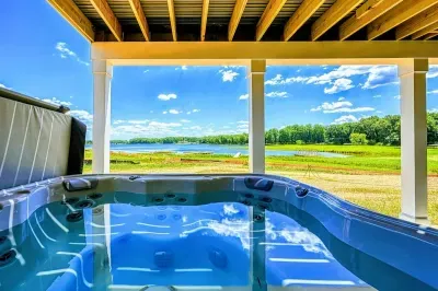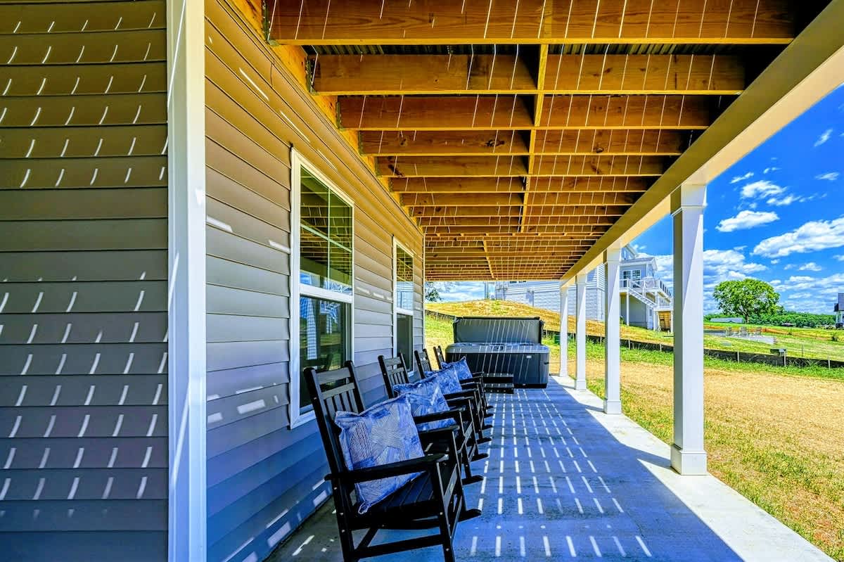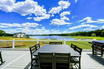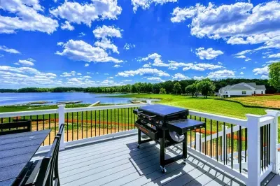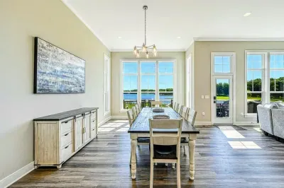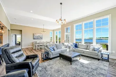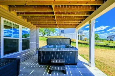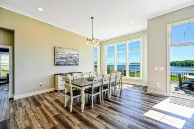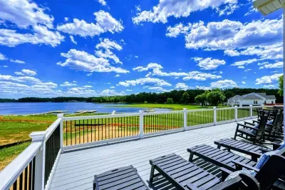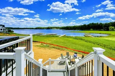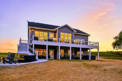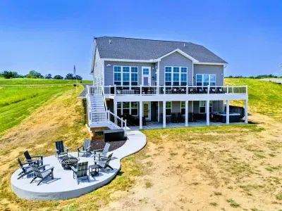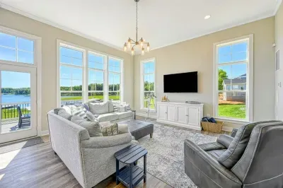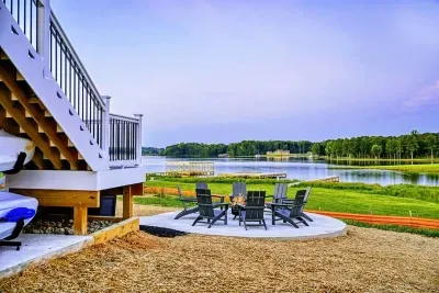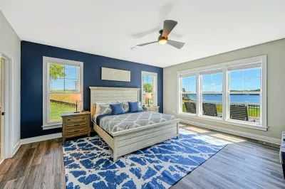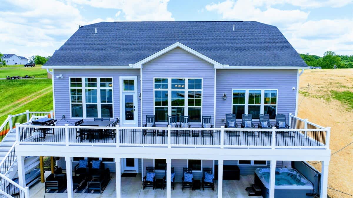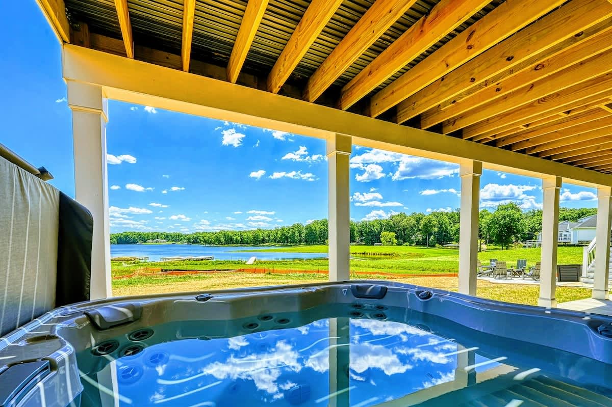 Experience comfort and luxury at our brand-new, modern lakefront home on the Private Side of Lake Anna. Enjoy stunning blue water views from the dock, hot tub, deck, or through the large windows inside. The property features a gently sloped, naturally sandy shoreline and warm freshwater, perfect for swimming and water activities. We provide four kayaks and other water toys for your enjoyment.