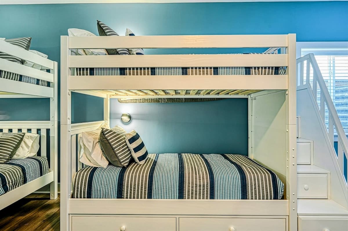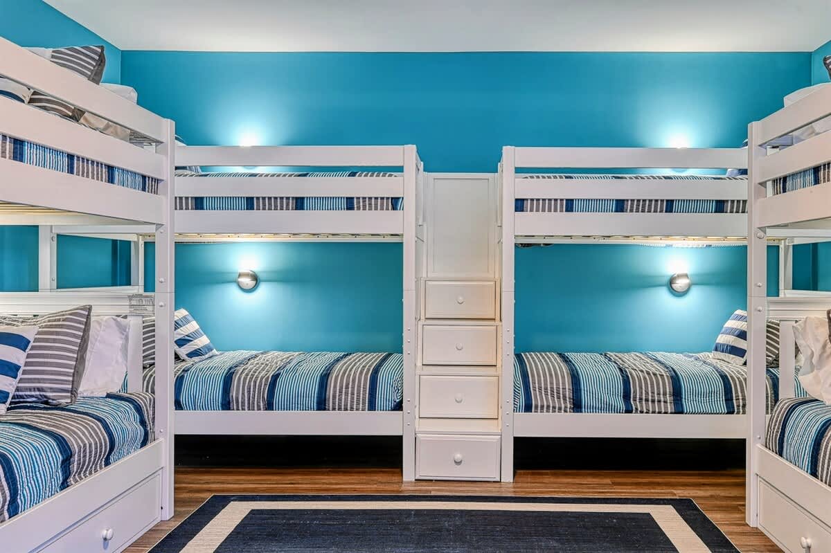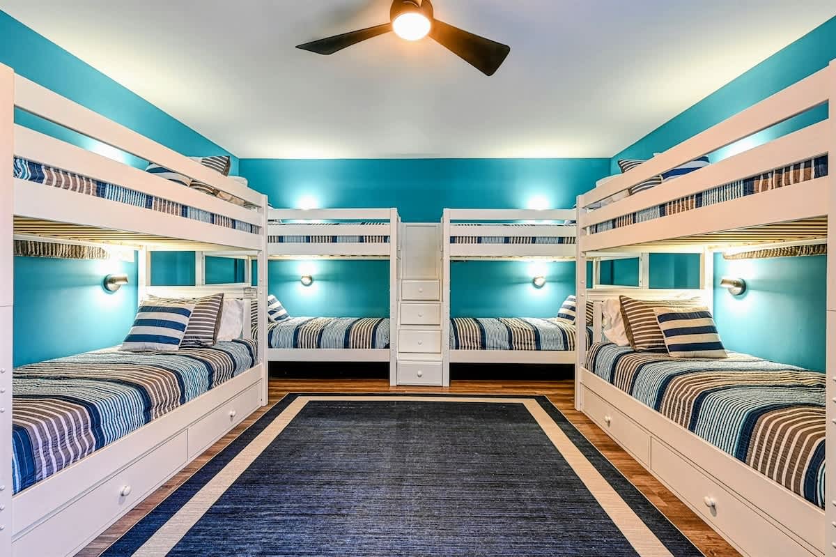 ● Sleeps 18: Spacious accommodations with comfortable sleeping arrangements, including 5 king beds plus bunk room.