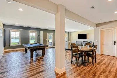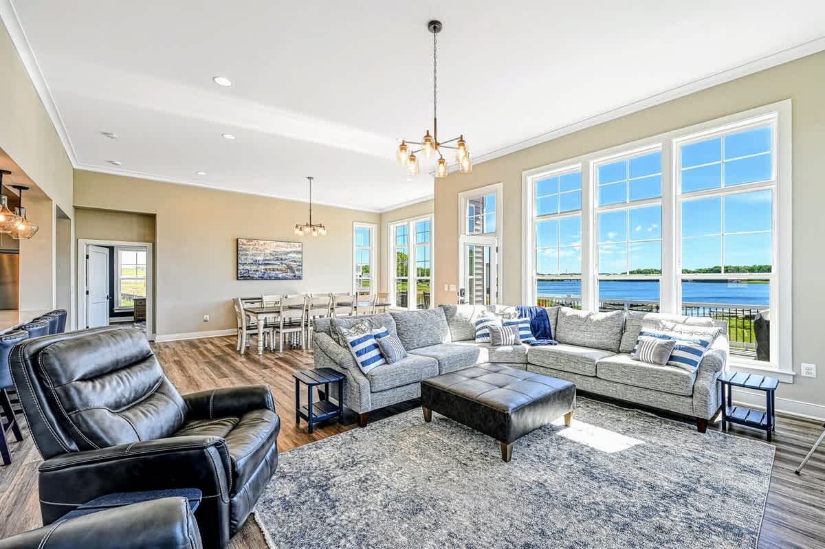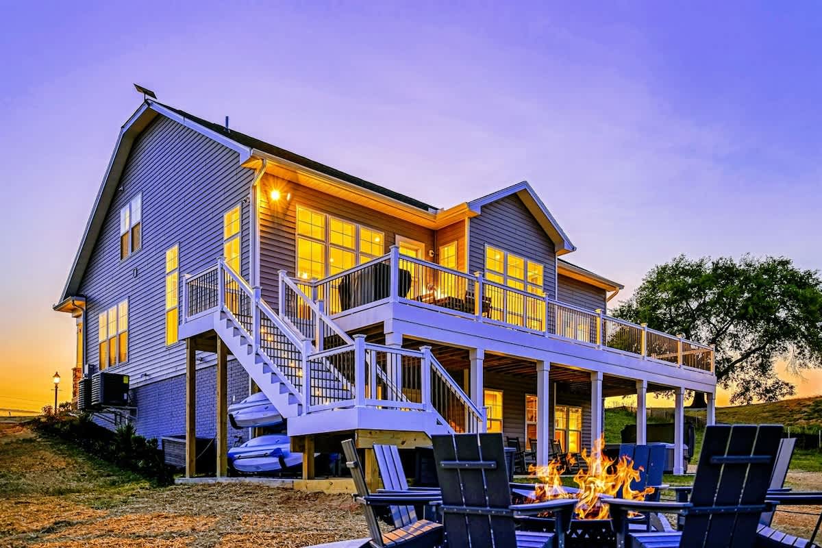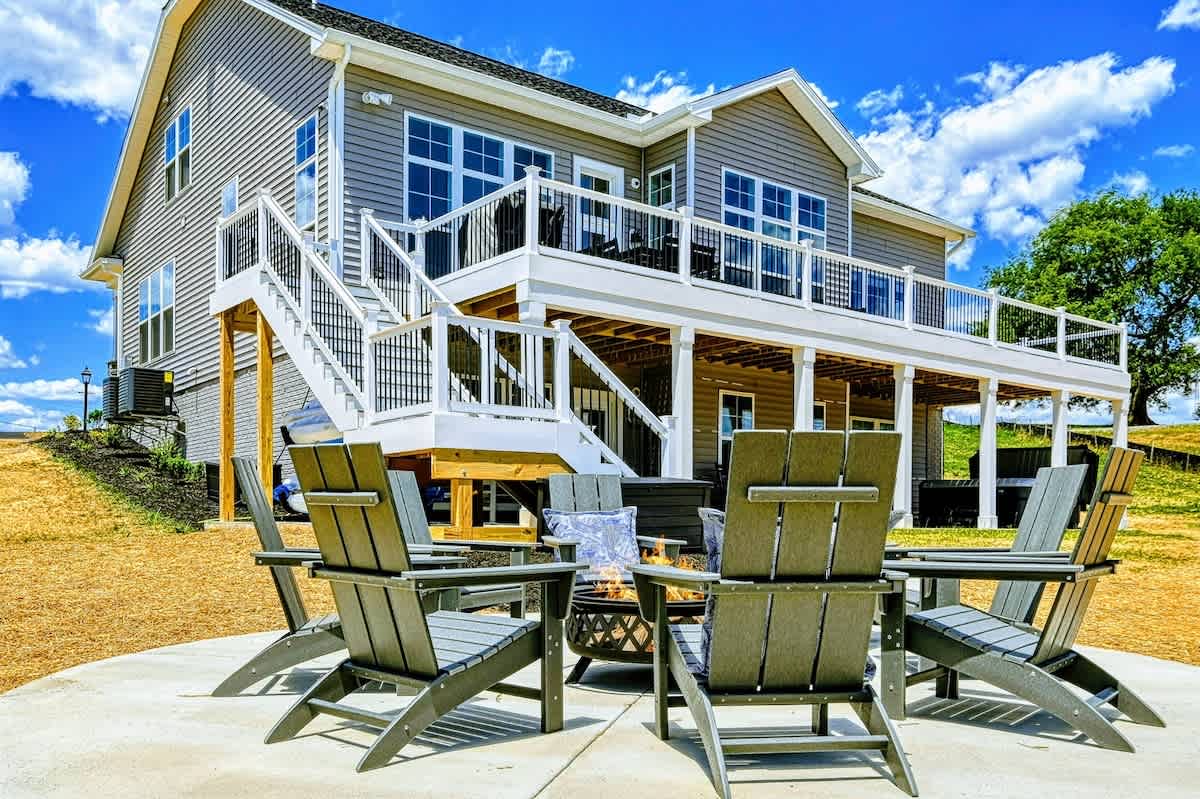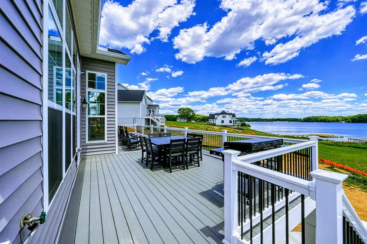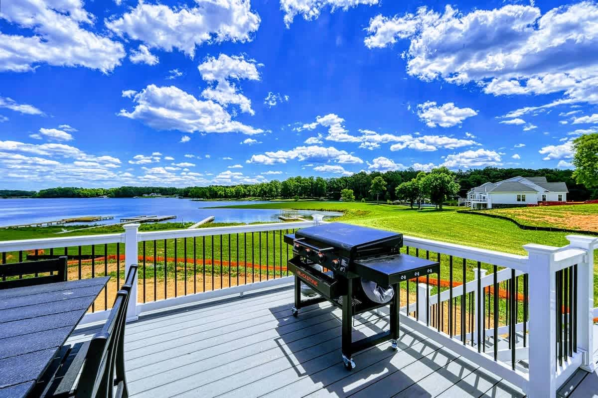 Point Breeze is a brand new luxury lakefront home with amazing views on the Private Side of Lake Anna. You will love our large peaceful waterfront backyard with a boat dock, hot tub, and fire pit. Enjoy the lake using our 4 kayaks, and water toys. Take in the gorgeous blue lake water views through the many large windows, while grilling delicious BBQ, or as you relax on the huge furnished deck. Have fun playing pool, foosball, basketball, arcade games, ping pong, cornhole, or singing karaoke.