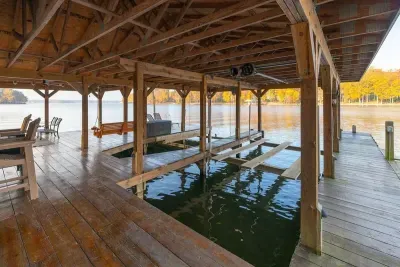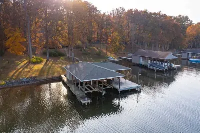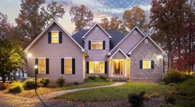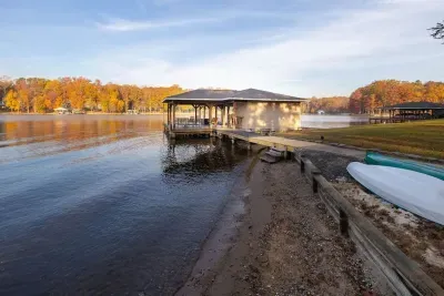 Expansive, three-level waterfront retreat on the public side of Lake Anna, Virginia. Stunning water views at the largest part of Lake Anna. Located on a large no wake cove just off the main lake, this is the perfect property for swimming and relaxing by the water. Relax on the expansive rear deck overlooking the lake or take a short walk to the water and the fire pit, two-slip boat house w/boat lifts, tiki bar, covered entertaining area, and uncovered sun deck.