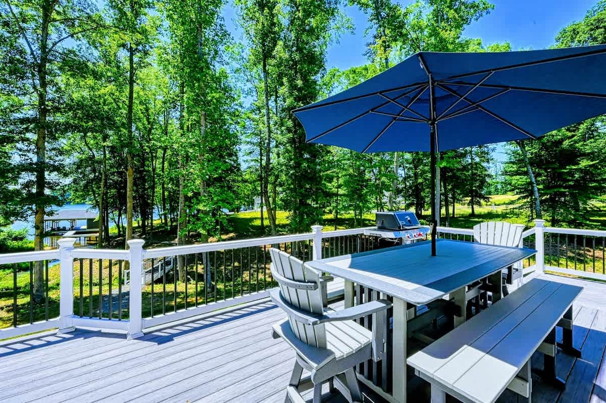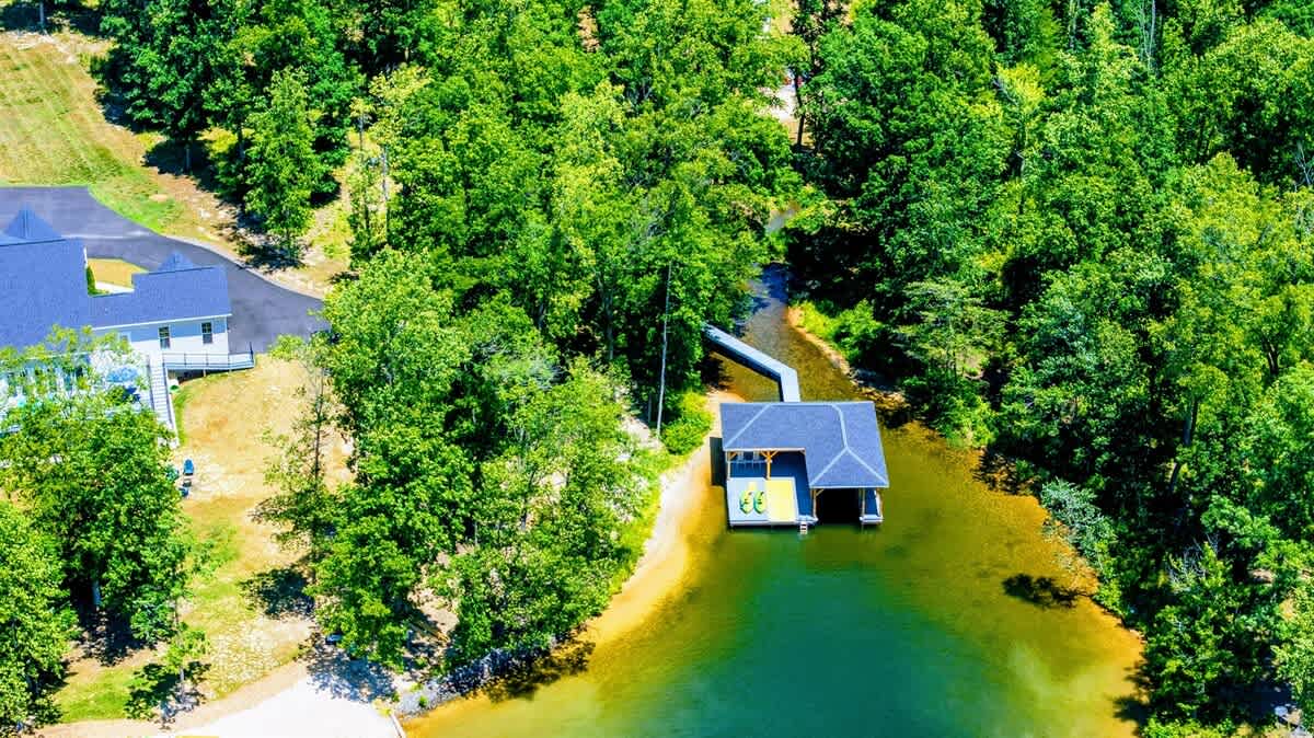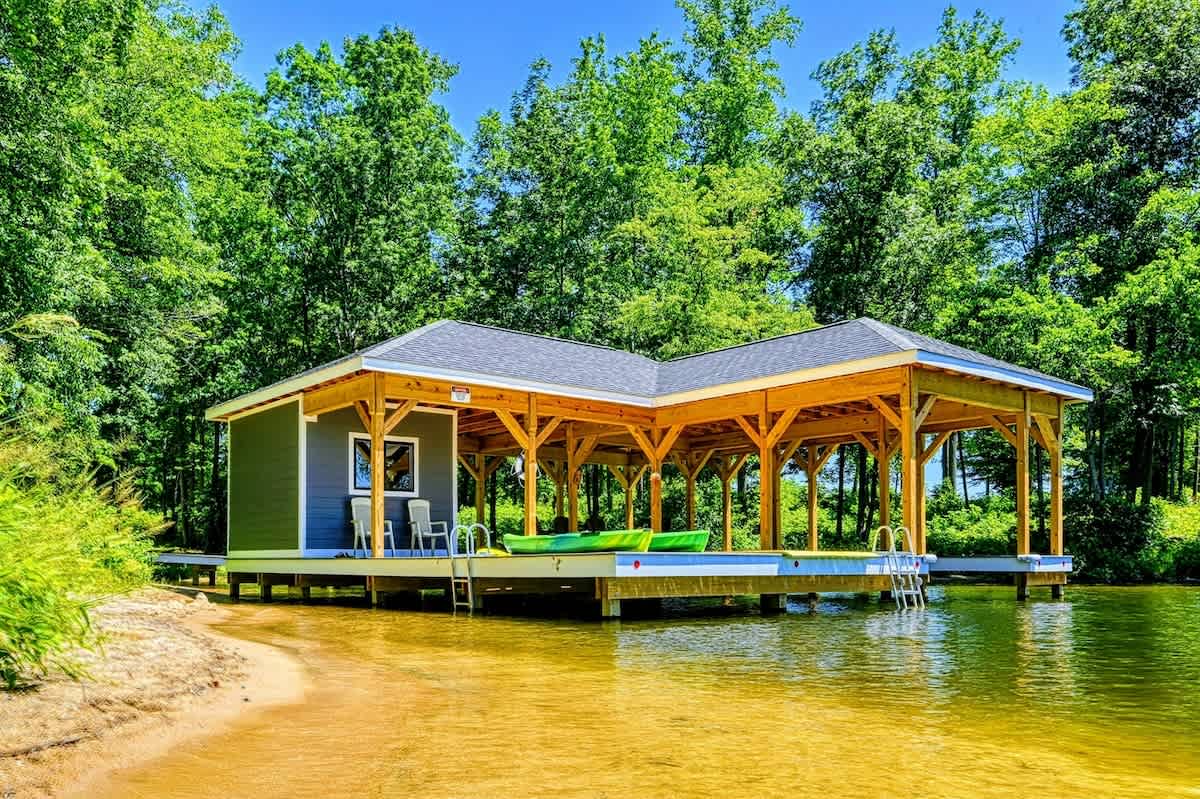 Shaded Cove is a brand new lakefront home on the Private Side of Lake Anna. Enjoy a large serene waterfront lot with a quiet cove, warm freshwater, and private dock and boat house with a covered 10 foot by 25’ foot boat slip and lounge, offering both shade and sunshine! Take in the gorgeous lake views while relaxing in our hot tub, beside an outdoor fire pit, or on the large furnished deck with outdoor dining options.