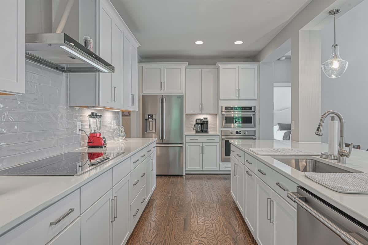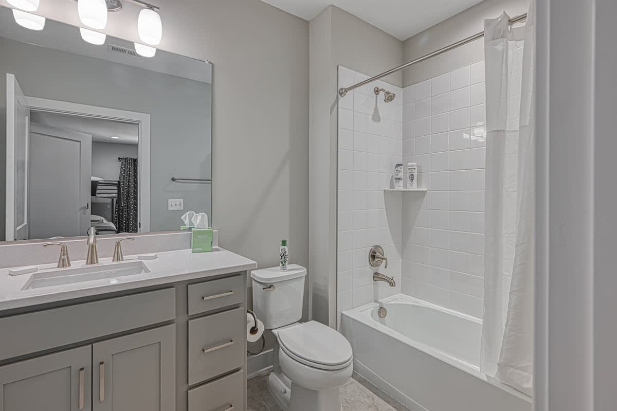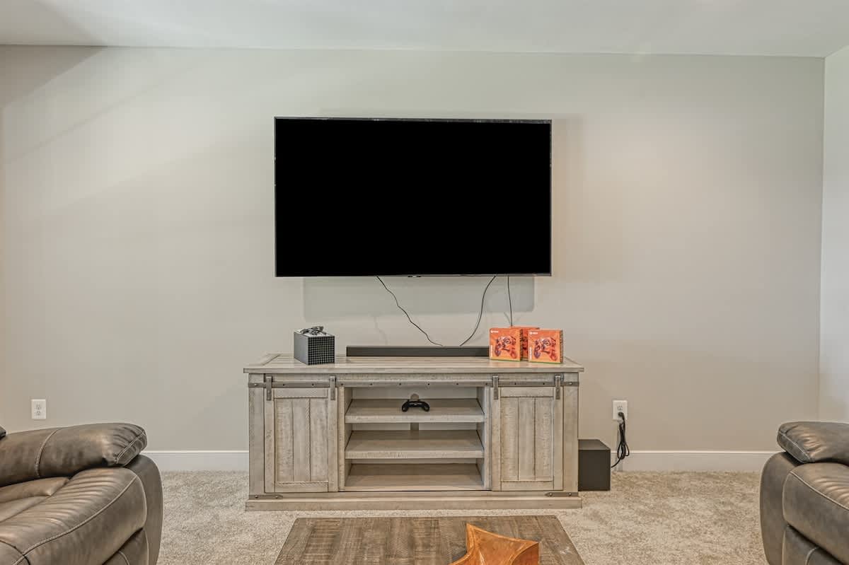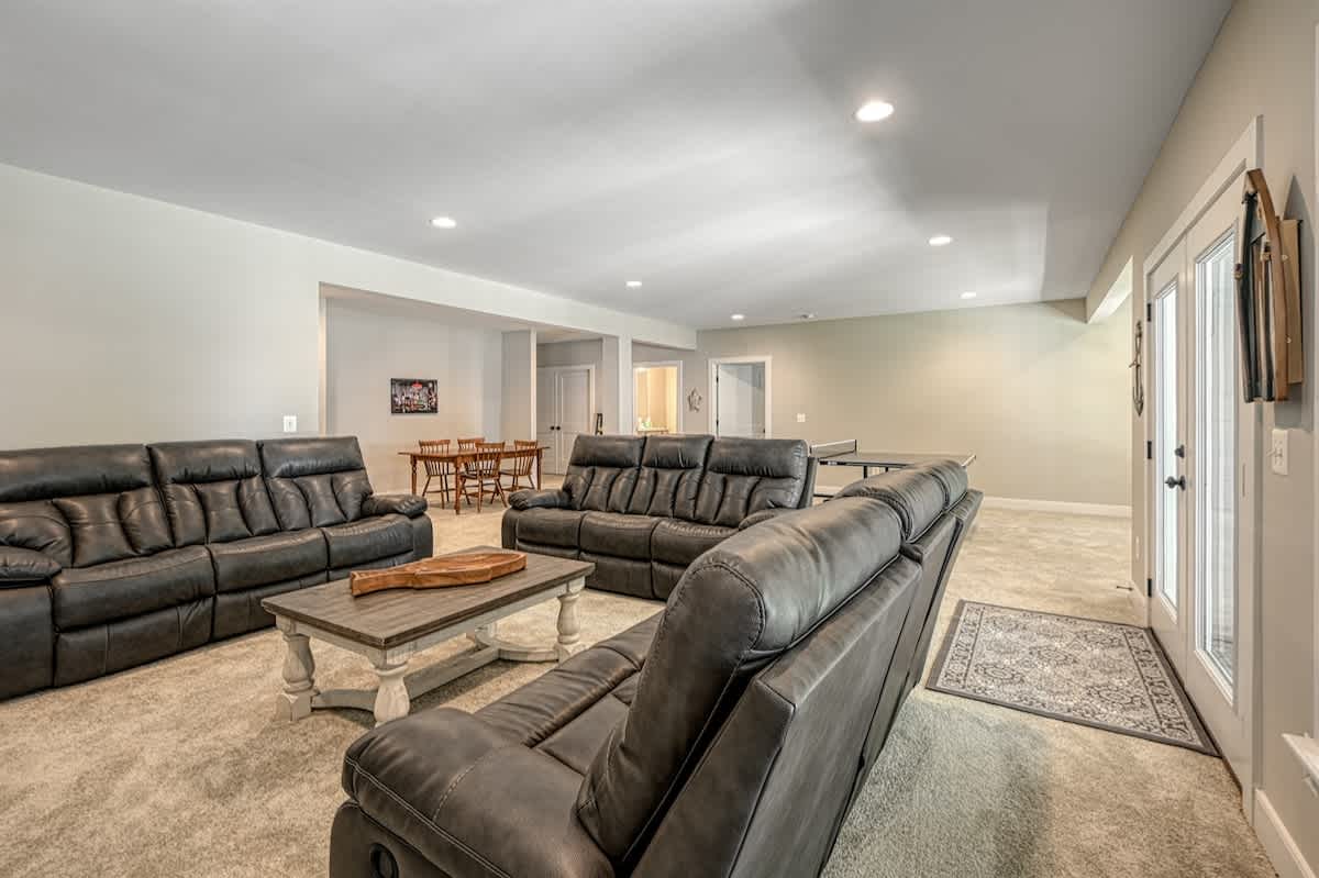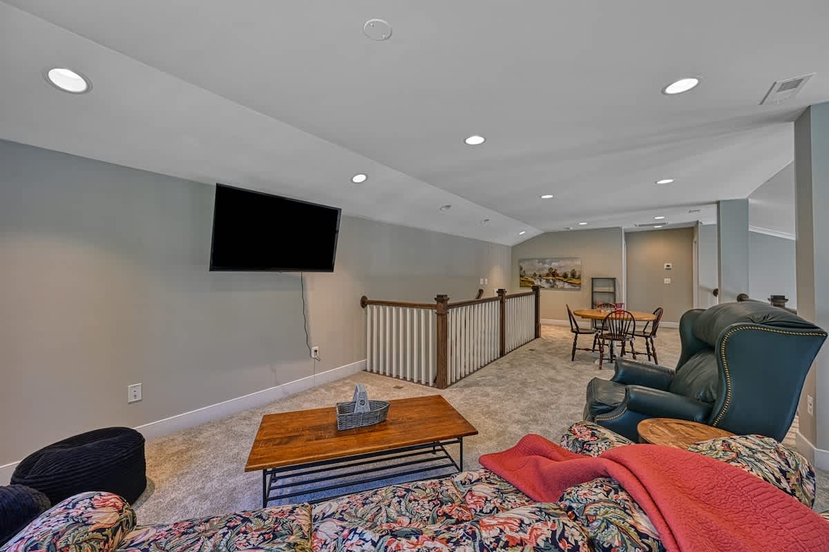 Experience comfort and luxury at our brand new and spacious lakefront home on the Private Side of Lake Anna. This beautiful home is located on a partially shaded lot in a cove with part of the boat house covered and part open to the sun. You can swim, explore with 2 kayaks, lay out on the dock's open deck area, or simply relax on the covered lounge area, enjoying the serene view of the beautiful lake! Roast some delicious s'mores outside using our outdoor fire pit, or have a BBQ using our grill on the deck. Enjoy the blue water views from atop of our massive deck. We have an open floor plan and offer 3 living areas including the main great room with a gas fireplace, a lower level game room with ping pong table, and games, and an open upper level loft area with a Smart TV and family appropriate games. Relax in the spacious main great room with water views through the huge bright windows, a gas fireplace, and 4K Smart TV. Use the High Speed Internet and free Wi-Fi network to stream your favorite shows while you FaceTime everyone! The home easily sleeps 16 with 5 bedrooms, and 4 bathrooms. Each of the 4 King bedrooms have their own TV. The main floor has an open floor plan with a great room and adjacent large kitchen, pantry, primary suite (King bed), second bedroom (King bed), and laundry room. The lower level has the game room, and bunk room suite (4 Twin over Twin Bunk beds). The upper level has a spacious loft area with TV, and 2 additional bedrooms including Jack (King bed) & Jill (King bed) style bedrooms with a shared full bath in between them.