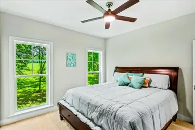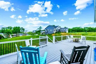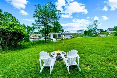 S’more Lake Anna is a brand-new lakefront home on the private side of Lake Anna. This spacious retreat sleeps 16 and features a fully equipped kitchen, spacious great room, media room, and game room with ping-pong and arcade machine. Enjoy the 2-story dock, private boat slip, furnished deck, fire pit, and stunning sunset views. With high-speed Wi-Fi, kayaks, paddleboards, and a gas grill, everything is ready for your perfect getaway—just pack your clothes, swimsuits, and water shoes!