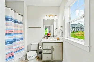 - Bright and inviting living space – Relax in the great room with expansive windows, a gas fireplace, and a 4K Smart TV.