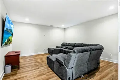 - Cozy media room – Unwind on a plush reclining sectional and enjoy movie nights on the 85-inch screen.