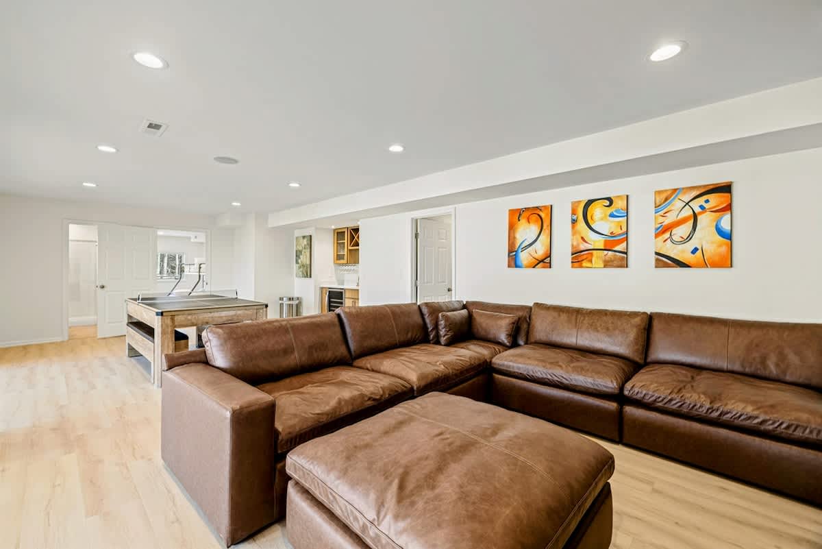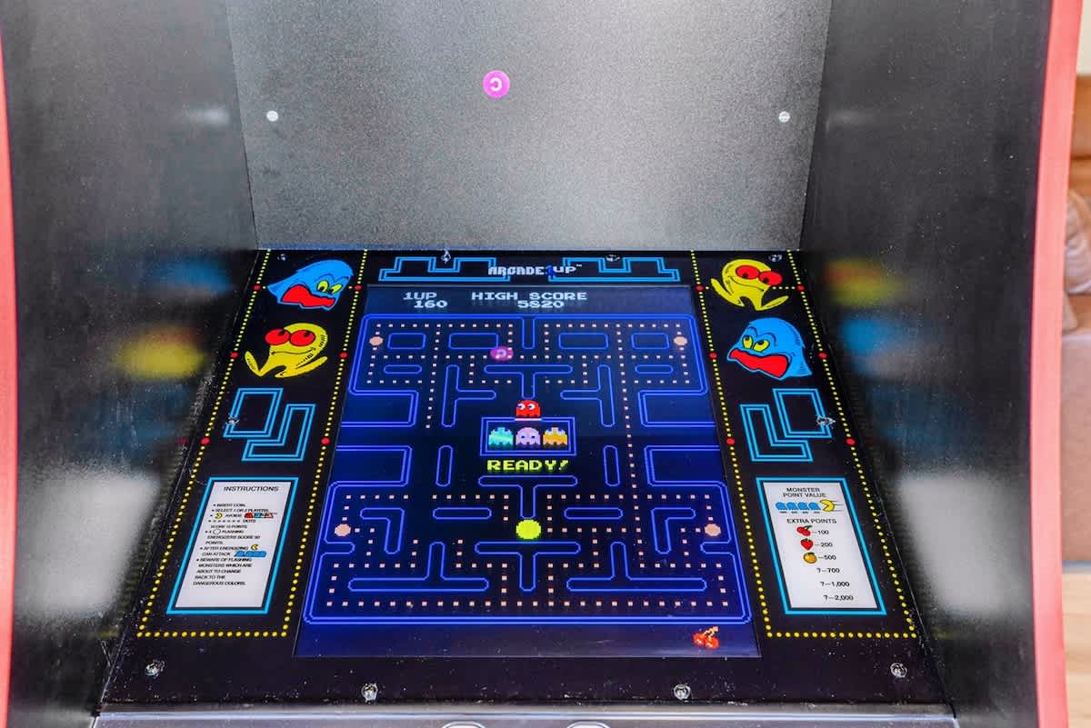 - Game room with a wet bar, refrigerator, pool table, ping pong, air hockey, arcade games, Xbox with Game Pass, and a movie lounge with plush seating.