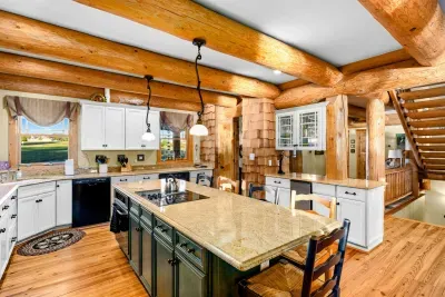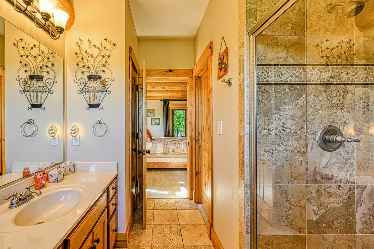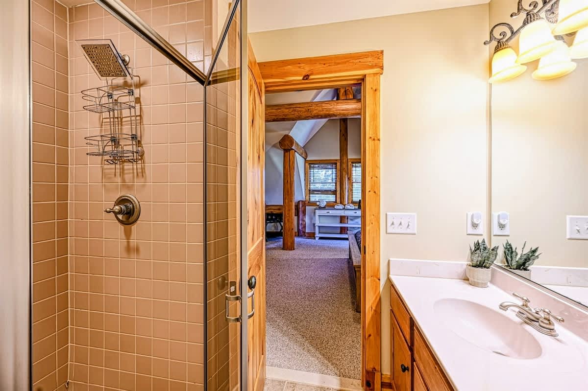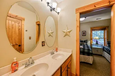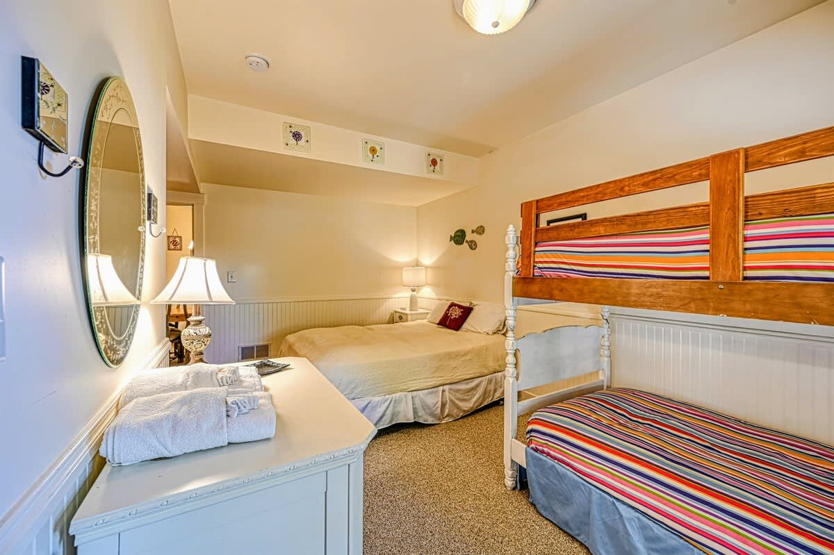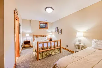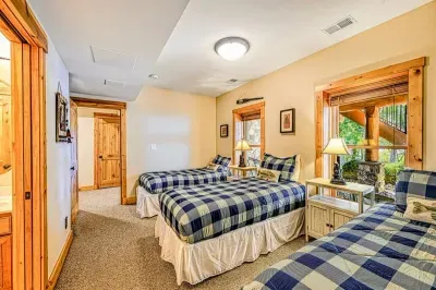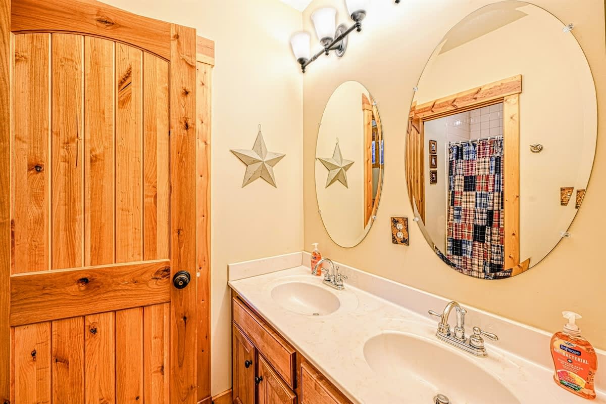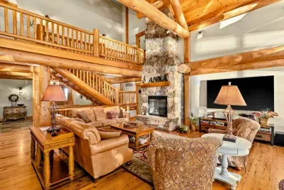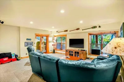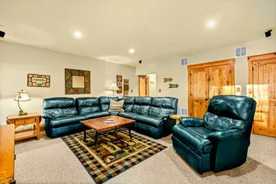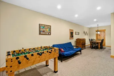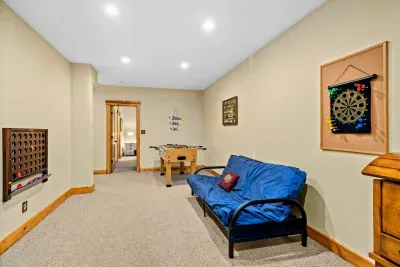 The great room's gorgeous gas fireplace, large smart TV, and plush seating are sure to make the perfect centerpiece for group gatherings. Even more family fun awaits downstairs, with highlights including a foosball table and a smart TV entertainment center. The impressive kitchen is more than equipped to easily handle family-style meal prep.