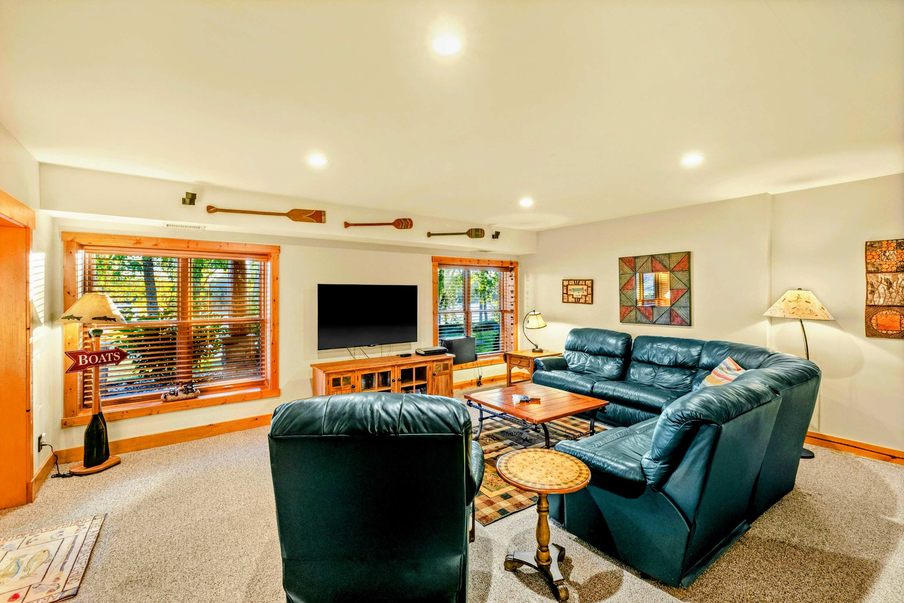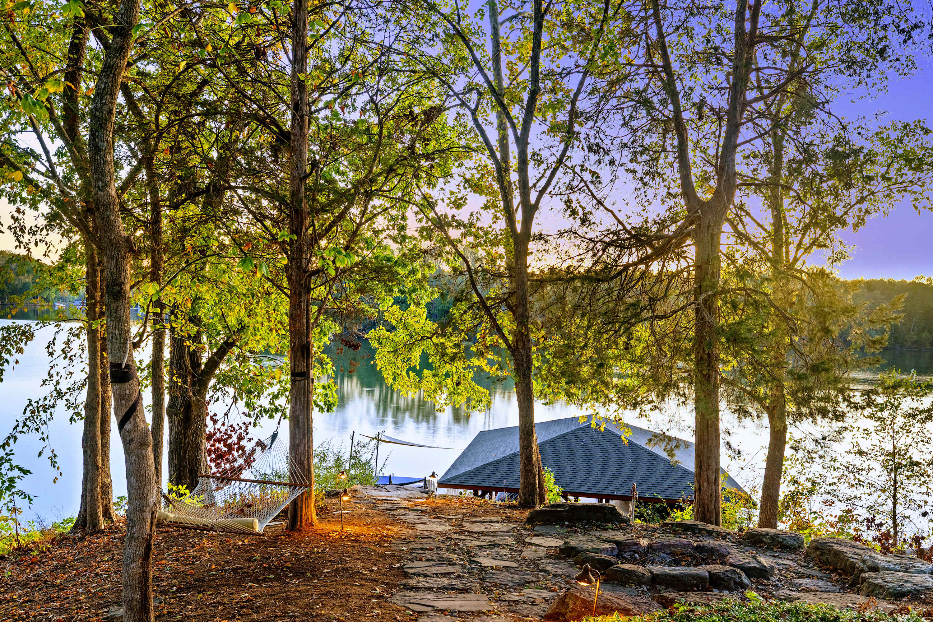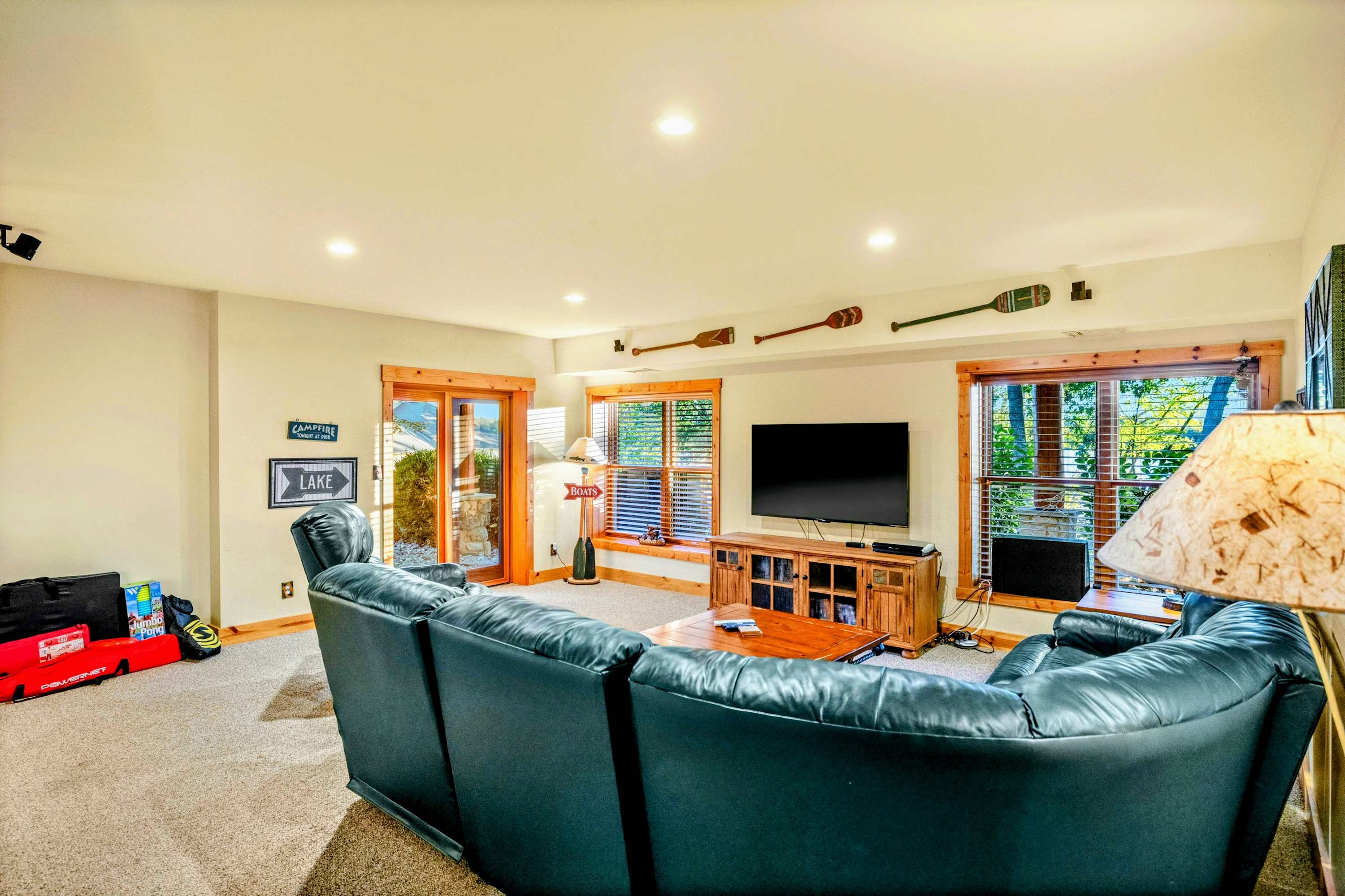 Fire up the gas grill on the main deck or kick back in breezy comfort on the fully screened patio. For a quiet moment to yourself, head down to the shady, lakeside hammock for an afternoon nap. In the evenings, everyone can gather around the firepit to share stories and roast s'mores.