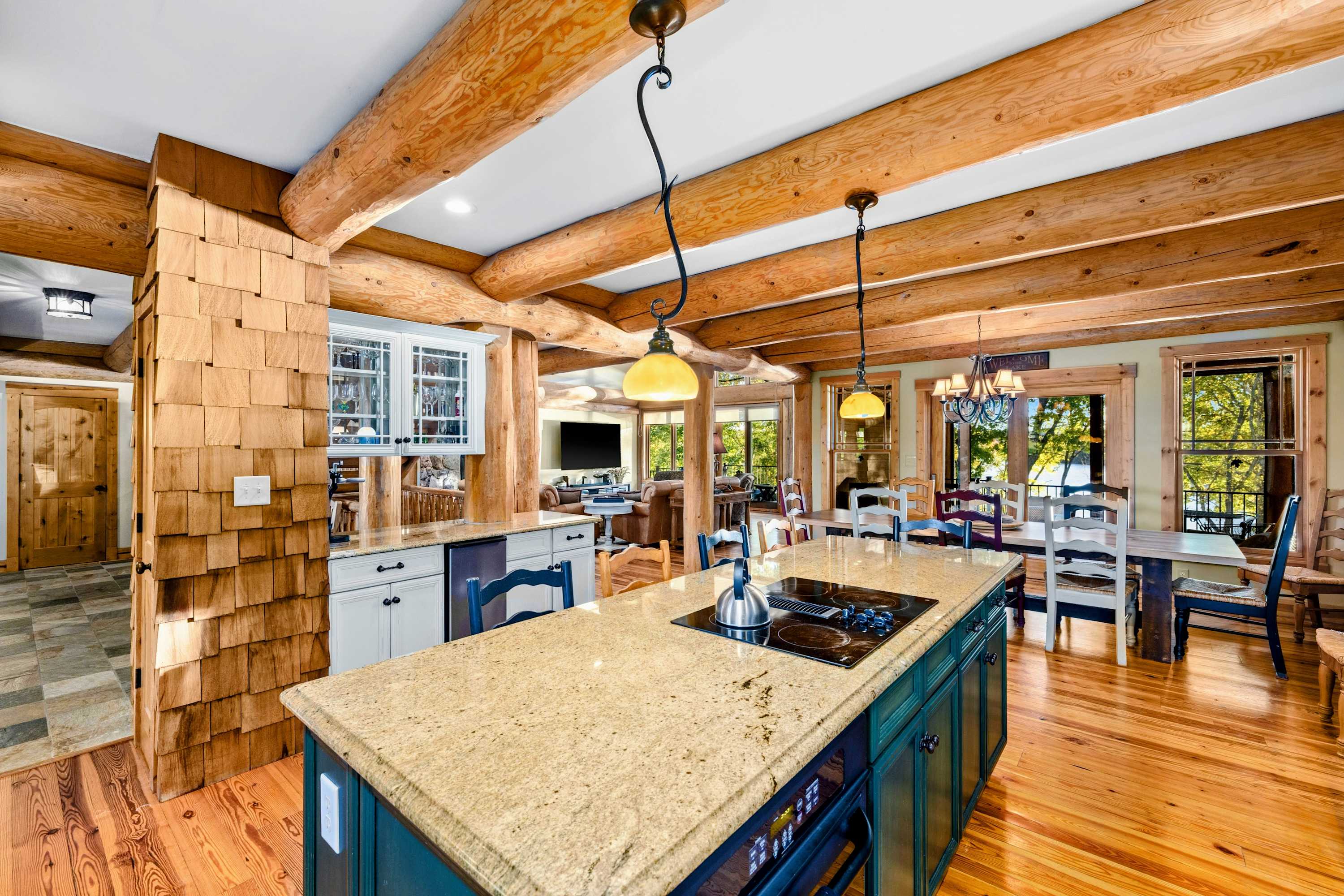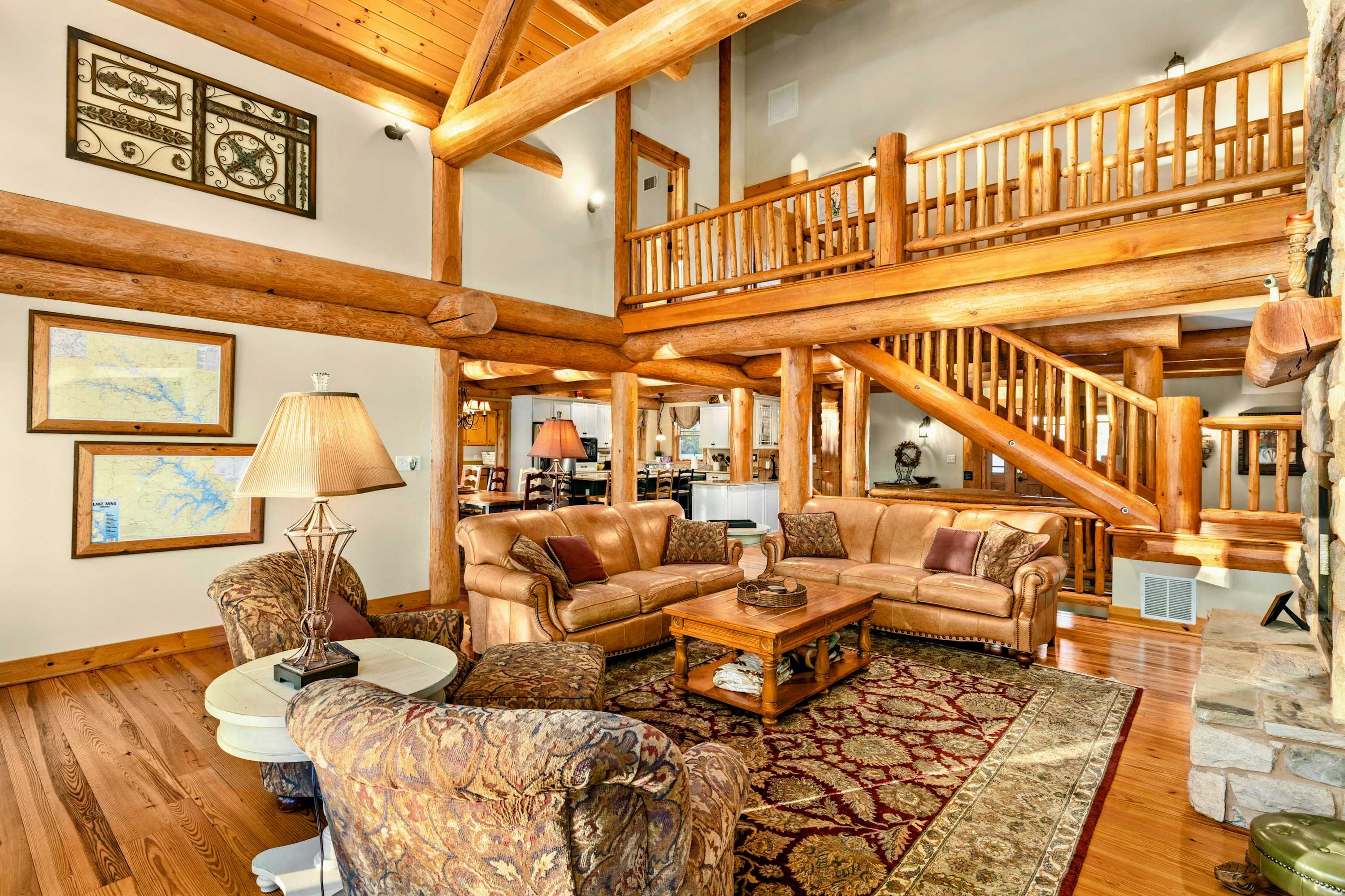 Welcome to Terry's Run Getaway! With west-facing frontage overlooking Terry's Run, this magnificent waterfront home boasts some of the best sunset views across all of Lake Anna. Primed for your next large family getaway, this spacious lodge comes furnished inside and out for comfortable lake living. The sprawling outdoor space offers plenty of opportunities for boating from the dock and afternoons spent barbecuing and playing lawn games, to a peaceful evening enjoying the hot tub. A cornhole set, ladder ball, two paddleboards, 2 kayaks, a variety of floats/noodles, and lifejackets are all available for use during your stay for fun on and off the water.
