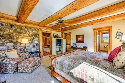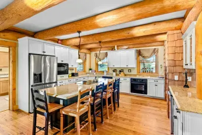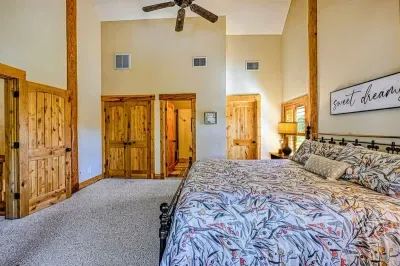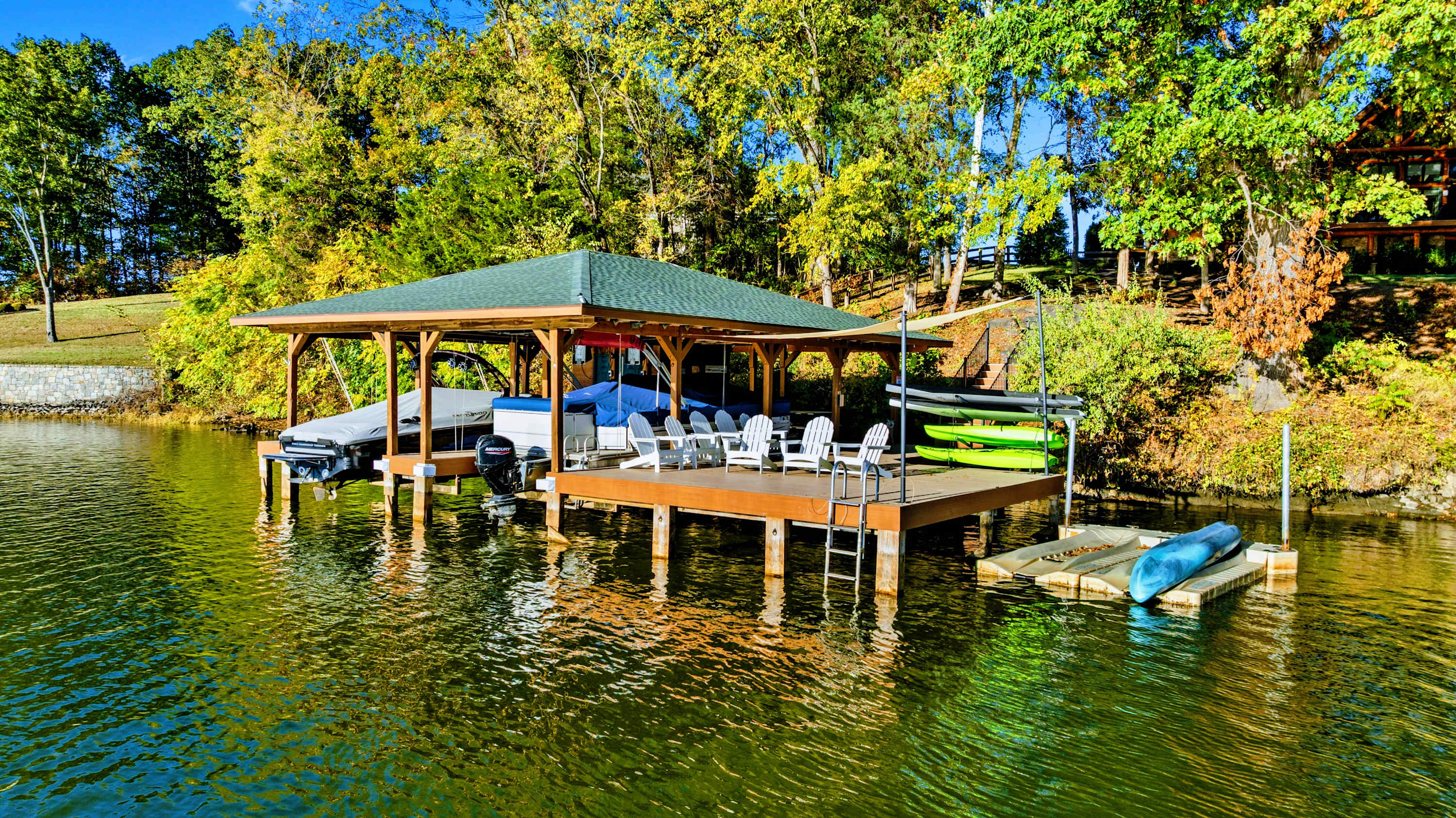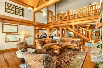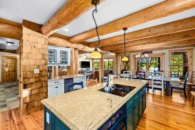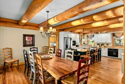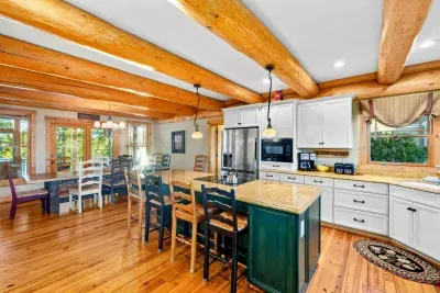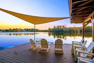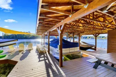 Welcome to Terry's Run Getaway! This stunning waterfront lodge on Lake Anna offers prime sunset views and is perfect for large family gatherings. Enjoy spacious outdoor living with a private boat dock, kayaks, paddleboards, floats, and lawn games. Grill on the main deck, relax in the lakeside hammock, or unwind around the firepit. Inside, a cozy great room with a gas fireplace and a game room await. Amenities include high-speed Wi-Fi, central AC, a washer/dryer, and a Level 2 EV charger.