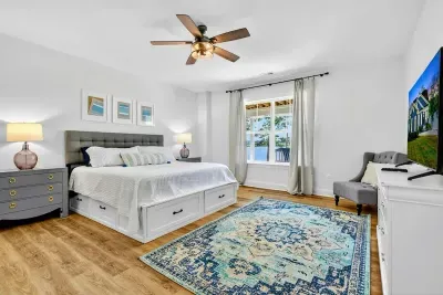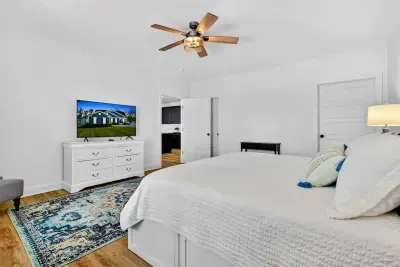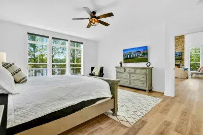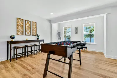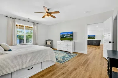 2 KING BEDS, 2 QUEEN BEDS, 2 FULL BEDS & 4 TWIN BEDS. 3 STORY HOME WITH PRIVATE LAKE ACCESS. FULLY STOCKED KITCHEN: DISHES, POTS, PANS, GLASSWARE, BLENDER, COFFEE POTS, GRILL, BLACKSTONE, LINEN SERVICE INCLUDED, TRASH REMOVAL INCLUDED, PROFESSIONAL CLEANING AFTER EVERY STAY. CENTRAL AC, WIFI, INTERNET TV. LAKE TOYS. LAWN TOYS. LOCATED ON A QUIET CUL DE SAC IN A SAFE COMMUNITY.
