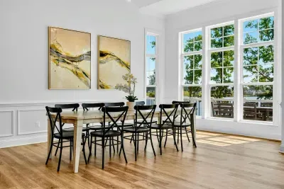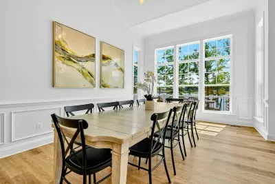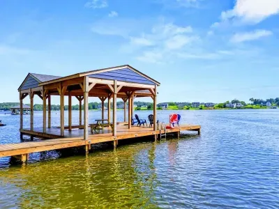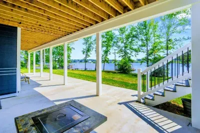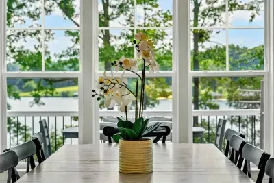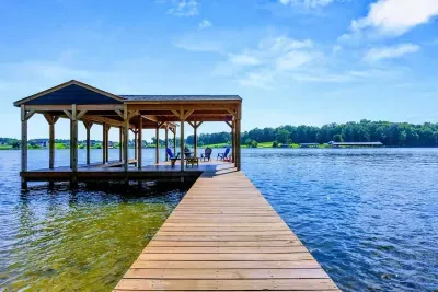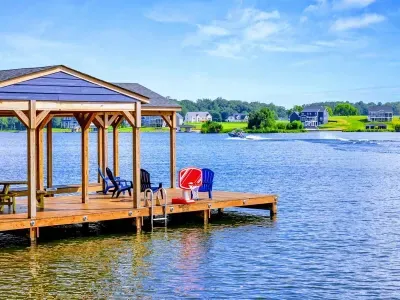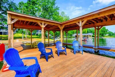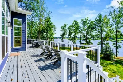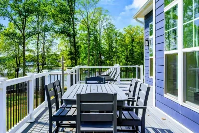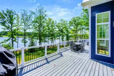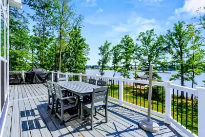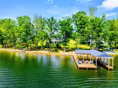The Shoreline is a 6BR, 4BA luxury lakefront home on Lake Anna’s private side with over 200 feet of waterfront, a private boat house, and unobstructed lake views. Designed for multi-family getaways, this 3-level retreat features a gourmet kitchen, spacious living areas, lake toys, fire pit, and expansive deck. Tucked on a quiet cul-de-sac for superior privacy—perfect for relaxing, reconnecting, and enjoying everything Lake Anna has to offer.