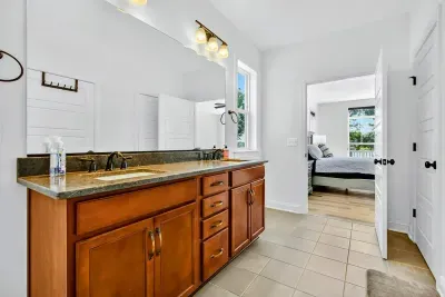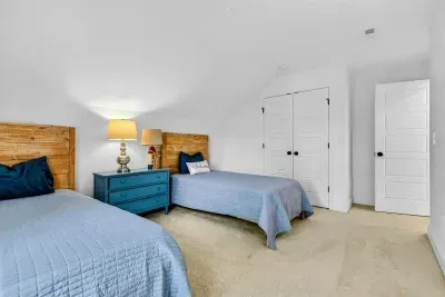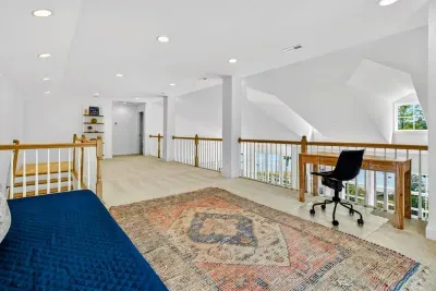 The second floor has 2 bedrooms, 2 bathrooms and a large loft with office desk and twin sized day bed. The first bedroom has a queen sized bed and a Jack and Jill full bathroom adjoined with a 2-twin bedroom.